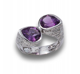 SORTIJA TÚ Y YO DE AMATISTAS, DIAMANTES Y ORO BLANCO