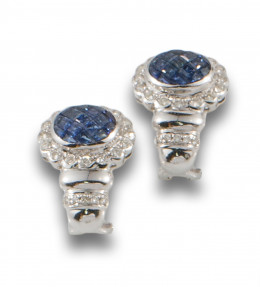 PENDIENTES DE DIAMANTES, ORO BLANCO Y DETALLE DE ZAFIRO SINTÉTICO