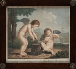 "Cupido preparando su arco" y "Cupido afilando sus flechas"