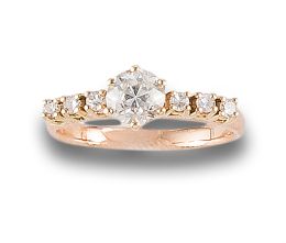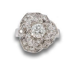 SORTIJA EN ORO CON DIAMANTE EN ORLA DE PÉTALOS CUAJADA DE BRILLANTES