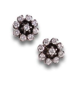 PENDIENTES ROSETONES DE DIAMANTES, EN ORO Y PLATA