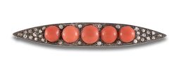 BROCHE C.1900 DE CORAL Y DIAMANTES, EN ORO Y PLATA
