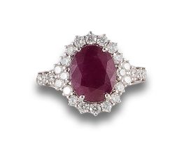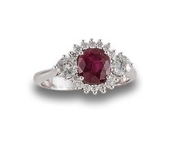 SORTIJA EN ORO BLANCO CON RUBÍ Y DIAMANTES