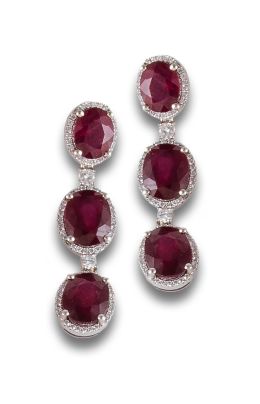 PENDIENTES EN ORO BLANCO, RUBÍES Y DIAMANTES
