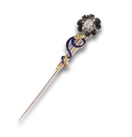 ALFILER S.XIX, DE ESMALTE Y DIAMANTE, EN ORO Y PLATA