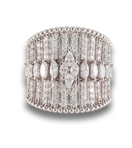 ANCHA SORTIJA CALADA DE DIAMANTES, EN ORO BLANCO
