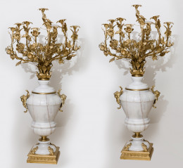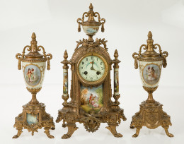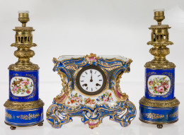 Guarnición de reloj y lámparas de porcelana, Francia, S.XIX.
