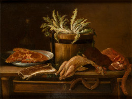 "Naturaleza muerta con pavo, salchichón, futa y vino", 1762.