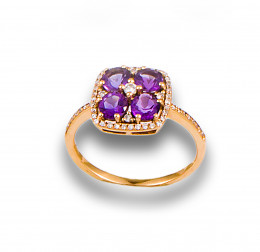 SORTIJA AMATISTAS, ORO ROSA Y BRILLANTES