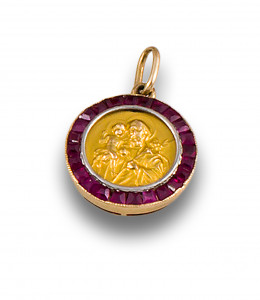 COLGANTE RELIGIOSO ORO AMARILLO Y RUBÍES SINTETICOS