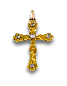 CRUZ COLGANTE ART NOUVEAU DE ORO Y DIAMANTES