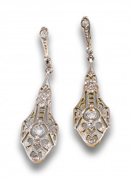 PENDIENTES ART DECÓ 1920, DE DIAMANTES, ORO Y PLATINO