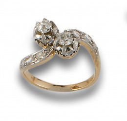 SORTIJA TÚ Y YO, CIRCA 1920, DE DIAMANTES, ORO AMARILLO Y PLATINO