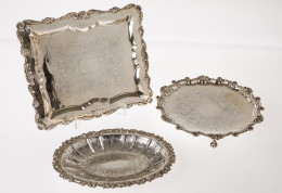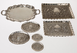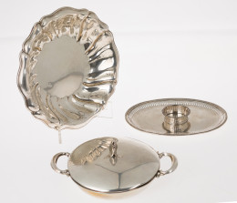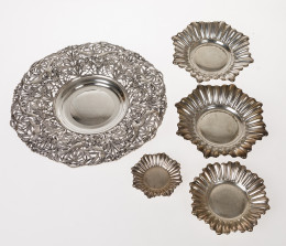 Lote de 4 bandejitas plata y 2 ceniceros.