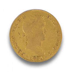 MONEDA ORO PELUCONA, FERNANDO VII, 1820