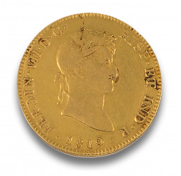 MONEDA ORO PELUCONA FERNANDO VII, 1819