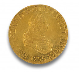 MONEDA ORO PELUCONA, FERNANDO VI, 1755