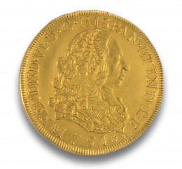 MONEDA ORO PELUCONA, FERNANDO VI, 1751