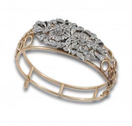 BRAZALETE ANTIGUO DE DIAMANTES, CENTRO BROCHE DOBLE CLIP