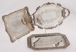 Bandeja rectangular en plata española, ley 916, S. XX