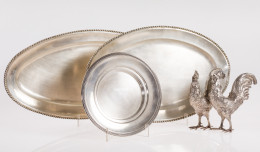 Lote compuesto por 4 centros circulares en plata española, Ley 916
