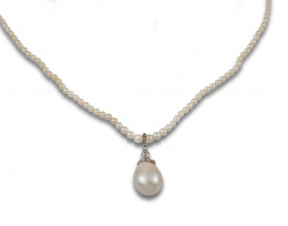 BROCHE DE PECHO ANTIGUO CON DIAMANTES Y PERLAS