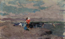 "Femme et bebe avec petite maisonaternidad en paisaje", 1906
