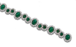 PULSERA EN ORO BLANCO CON CABUJONES DE ESMERALDAS Y DIAMANTES