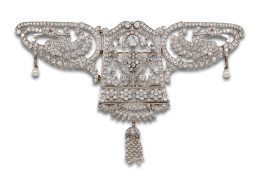 DEVANT-DE-CORSAJE DEL PRIMER TERCIO DEL S. XX EN ORO, PLATINO, DIAMANTES Y PERLAS